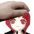 Makima from Chainsaw Man, with her distinctive red hair, gets a cute plushie hat placed on her head by an unseen hand.