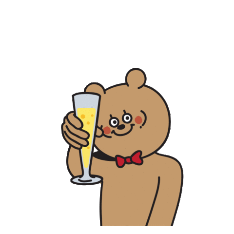 A cute cartoon bear, part of the Cham Whiskey series, raises a champagne flute in a cheerful toast, celebrating with a drink.