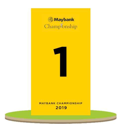 Yellow Maybank Championship 2019 sign displaying changing golf scores like 2, 5, 8, 10, 13, 16.