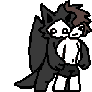 Pixel art sticker of a black and white Changed latex creature transforming into a two-headed form.