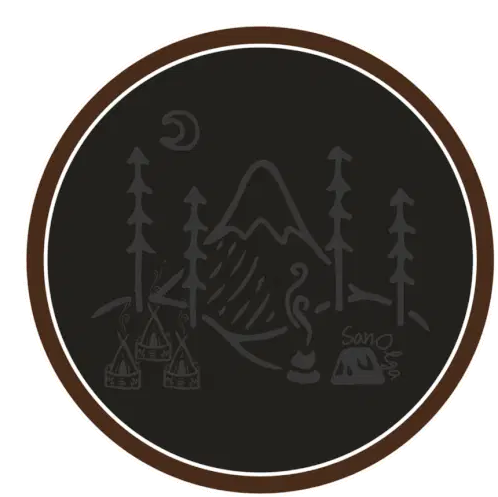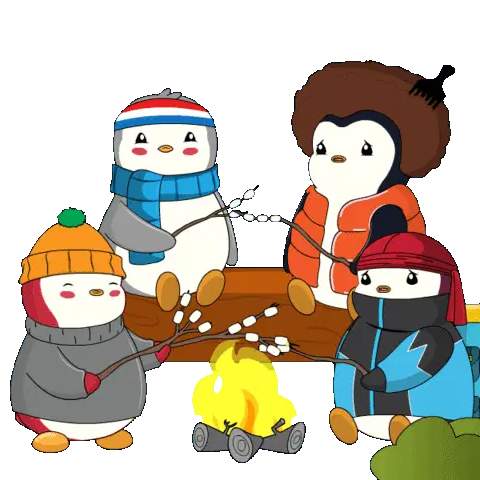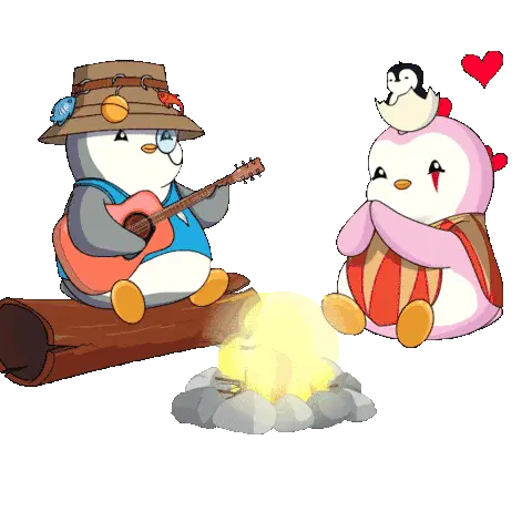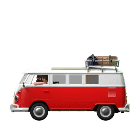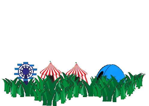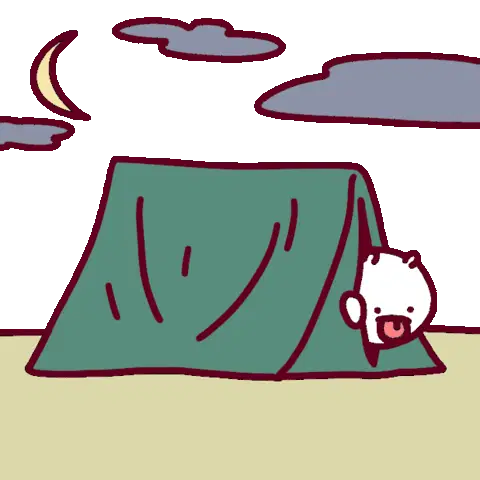 Animated sticker featuring a Chaostrip camping van with a side tent, parked in the rain, perfect for outdoor enthusiasts.