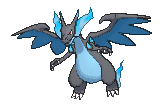 Animated sticker of Mega Charizard X, the powerful Dragon/Fire-type Pokémon, showcasing its iconic dark and blue form.