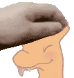 A close-up animated sticker of Charizard, the iconic Pokémon, looking fierce with a blue slipper comically placed on its head.