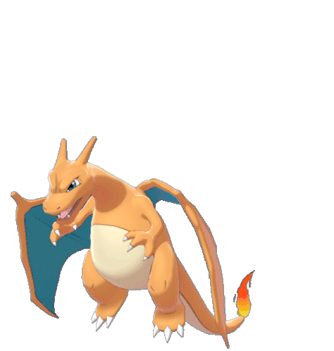 Charizard, the iconic fire-breathing Pokémon, stands ready with its powerful wings and flaming tail.