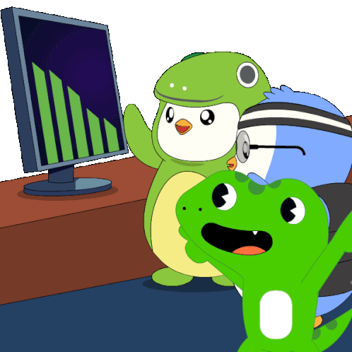 two penguins and a lizard are looking at a computer monitor
