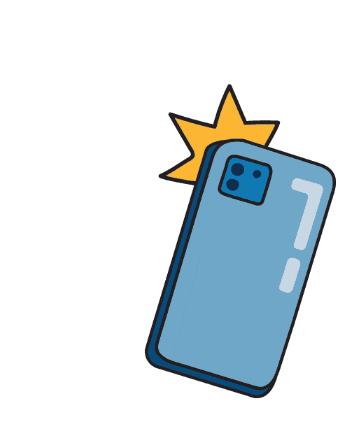 An animated sticker featuring a light blue smartphone with a camera flash, representing Chattanooga and UTC.