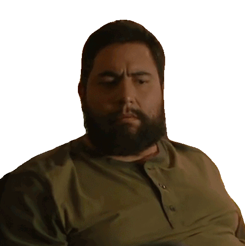 Hombre barbudo revisando su aliento, cubriéndose la boca con la mano, expresando preocupación por el mal aliento.