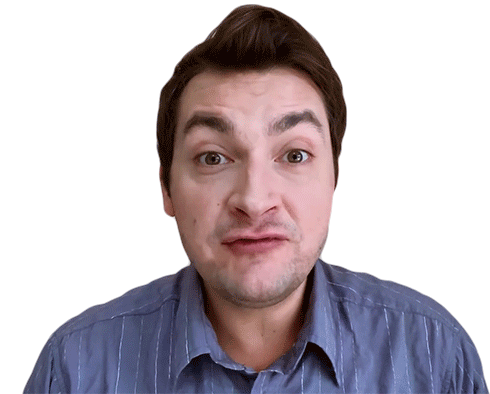 Joel Vieira makes a surprised face with wide eyes and pouting lips, looking around then directly at the camera.