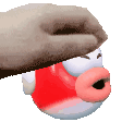 An animated sticker of Cheep Cheep from Mario, held by a hand, created by Vince.