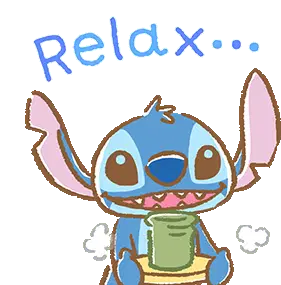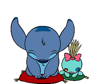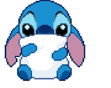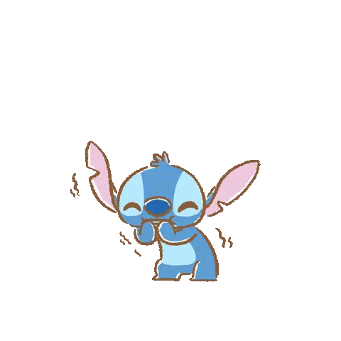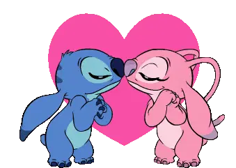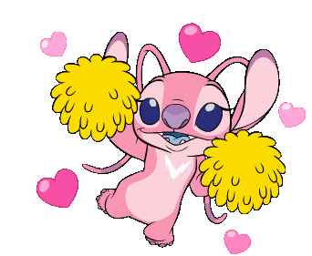 Angel, the pink Stitch character, enthusiastically cheers with yellow pom-poms, surrounded by floating pink hearts.