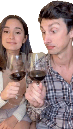 Ashleigh Ruggles Stanley and Maclen Stanley raise their wine glasses in a cheerful toast, celebrating a moment.