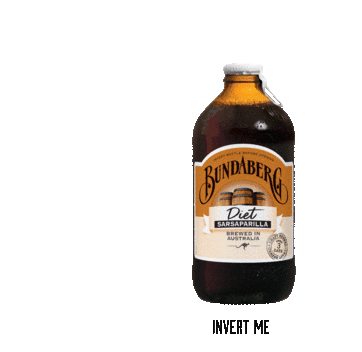 Animated sticker of a Bundaberg Diet Sarsaparilla bottle, rotating and inverting with the text 'INVERT ME'.
