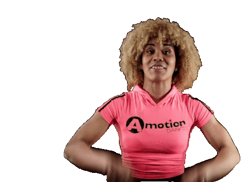 Cherylle Cherylleshyne, an energetic woman with an afro, gestures with open hands, inviting someone to come closer or hurry up.
