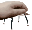 Chiaki's animated table sticker features a hand gently patting small, cartoon legs on a table, creating a playful and cute interaction.