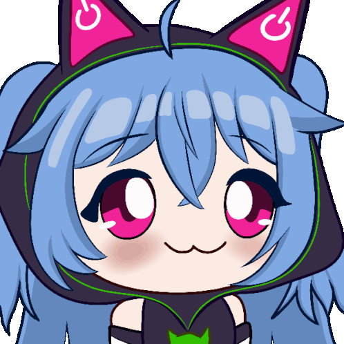 a girl with blue hair and pink eyes is wearing a black cat hood