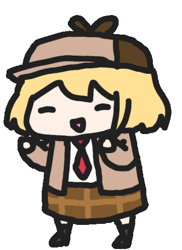 Chibi Amelia Watson (Ame) animated sticker, smiling and moving her arms. A cute and energetic chibi character.