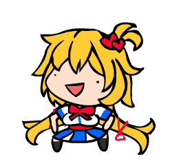 Animated sticker of Chibi Haachama (Akai Haato) from Hololive, joyfully dancing with her signature blonde hair and red bow.