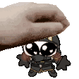 A cute chibi Helldivers 2 Helldiver character receives affectionate patpats and headpats from an unseen hand.