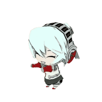 A chibi-style Aigis from Persona dances with rhythmic movements, featuring her light blue hair and mechanical outfit.