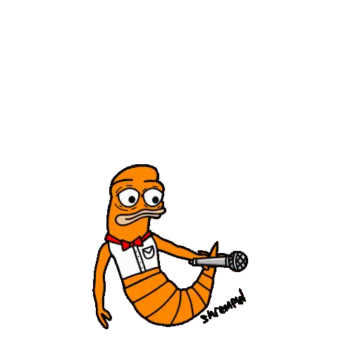Chicken Bro at a podium, initially holding a smaller chicken head, then reacting with a surprised expression.