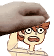 A cartoon chicken with a surprised expression is held by a hand, a fun pet sticker featuring Lori's character.