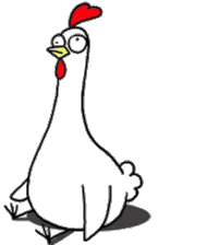 A humorous animated sticker featuring a cartoon chicken with a surprised expression, comically farting green bubbles.
