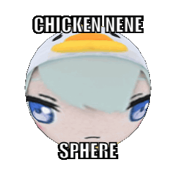 Animated sticker featuring the text 'Chicken Nene' and 'Sphere' around a rotating white sphere.