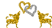 An adorable animated Chihuahua dog sparkling with gold glitter and hearts, expressing love and affection.