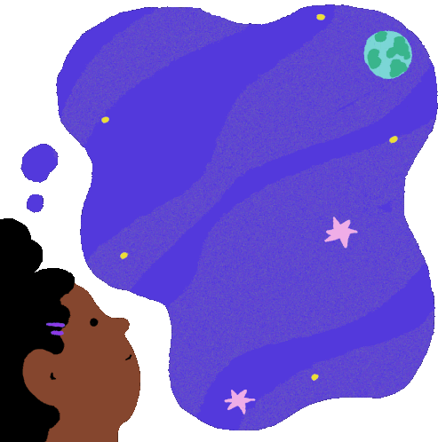A dreamy sticker showing a person imagining an astronaut in space with the message "Child Checks Help Children Succeed."