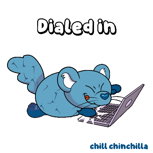 The Chill Chinchilla is 'Dialed in,' happily typing on a laptop, perfect for showing focus and productivity.