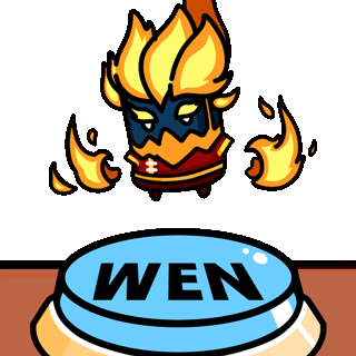 A fiery Chillchat NFT character sits on a 'WEN' button, surrounded by flames, embodying the 'hot' meme.