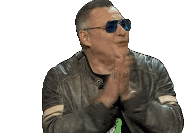 a man in a leather jacket and sunglasses is clapping his hands
