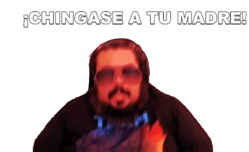 Agbin3r shouts "¡Chingase A Tu Madre!" with an intense expression, wearing sunglasses and a black shirt.