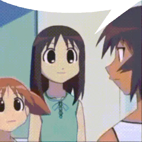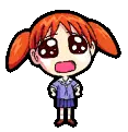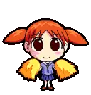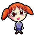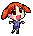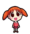 Azumanga Daioh's Chiyo Chan, a cute low-polygon anime girl, waves cheerfully with her signature pigtails.