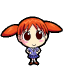 Chiyo Chan Chiyo Mihama from Azumanga Daioh, a cheerful pixel art character, jumping with joy and a wide smile.