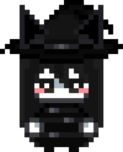 Chlomaki from Wadanohara And The Great Blue Sea, depicted as a mysterious pixel art cauldron with a witch's hat.