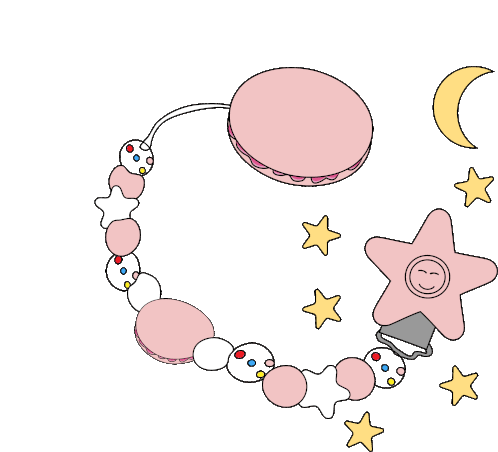 Animated sticker featuring 'Chmurkowe Love Terazwy' with celestial elements like the moon and stars, connected by a chain.