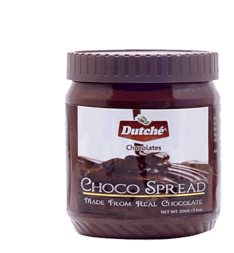 Animated sticker of a jar of Dutche Chocolates Choco Spread, highlighted with vibrant yellow and purple outlines.