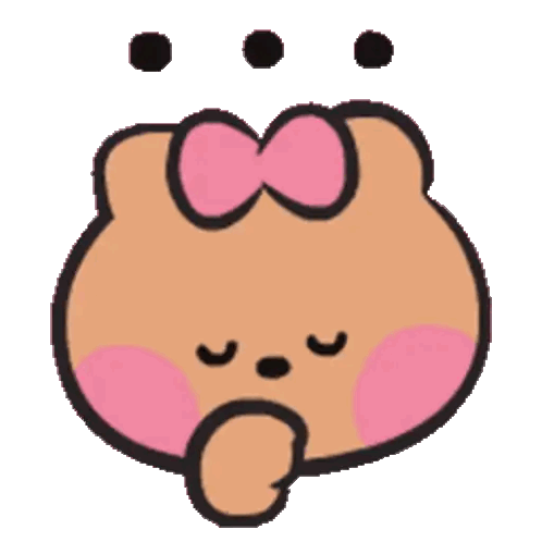 Chonini Minini, a cute cartoon teddy bear with a pink bow, is shown deep in thought, pondering with closed eyes.