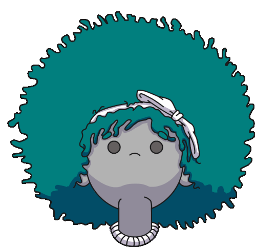 Madu, a character with vibrant blue hair, cries with big tears and makes "Buuaa!" sounds in this animated sticker.