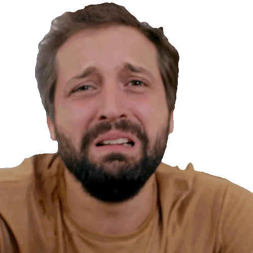Gregório Duvivier crying intensely like a baby, with tears streaming down his face.
