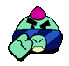 a cartoon character with a pink flower on top of it is laying on a blue blanket .