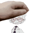 a hand is holding a drawing of a person with glasses and a tie .