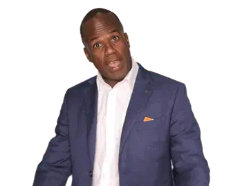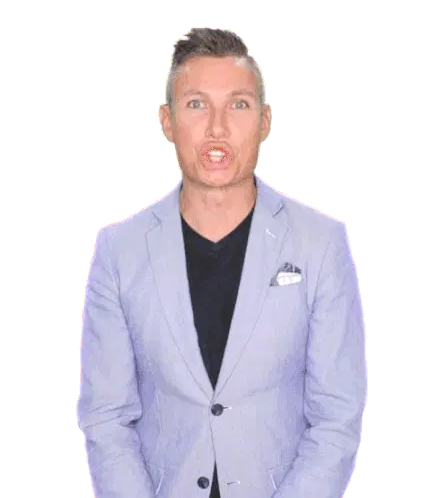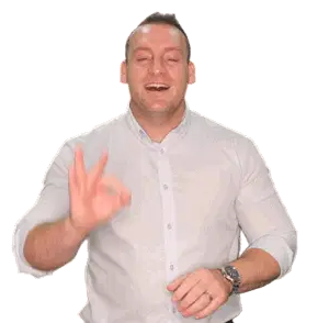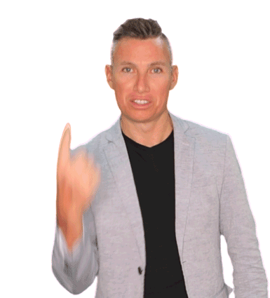 Chris Gilmour from All Properties Group points his finger upwards, signifying "Number One" or success.
