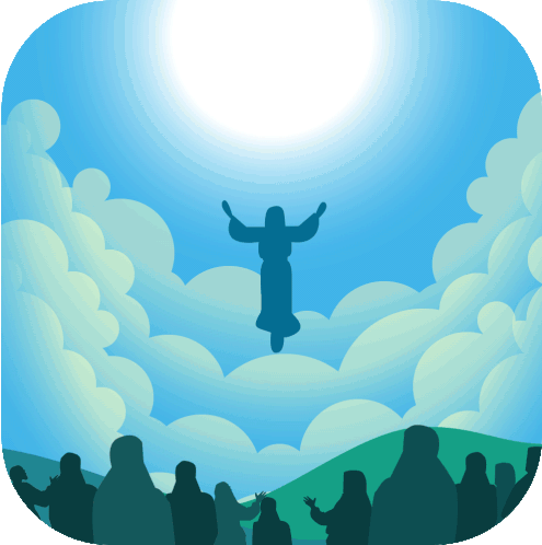 An animated sticker for Christi Himmelfahrt, featuring Jesus ascending to heaven with onlookers below.
