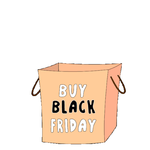 Cute animated penguin in a shopping box, promoting 'BUY BLACK FRIDAY' for holiday sales.
