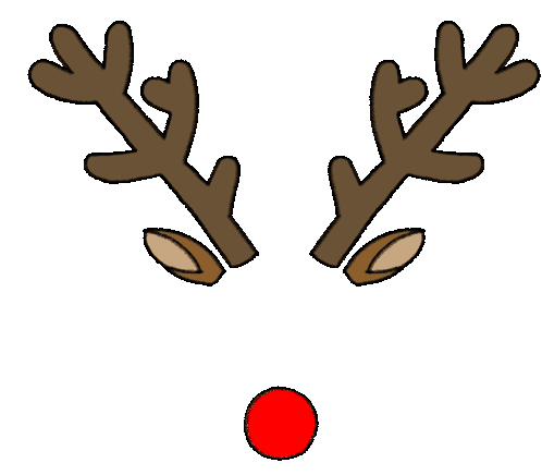 A festive animated sticker featuring Rudolph the Red-Nosed Reindeer's antlers, ears, and a glowing red nose, perfect for Christmas.