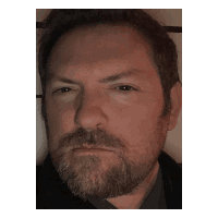 Christopher Yost's stern face distorts and squishes in a humorous warp effect.