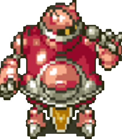 Pixel art robot Gato from Chrono Trigger holding a microphone, ready for a performance.