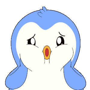 A cute blue and white cartoon penguin with puffed cheeks and a sad, pouty expression.